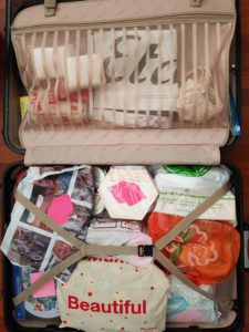自分用に着替えなども1日分入れましたが、現地で購入することを前提にこちらのスーツケースにはほとんど自分のものはありませんでした。